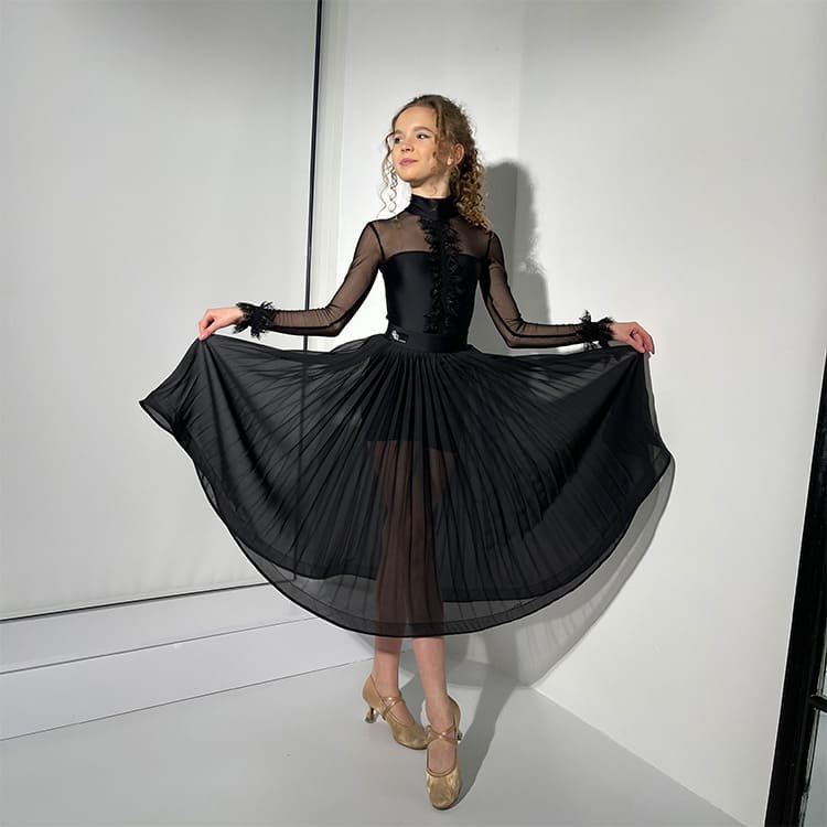 The Ballroom Dance Skirt DW61 is created for dancers who want to combine elegance and performance. Made in timeless black, this skirt features sheer inserts and a full flared cut that moves beautifully with every spin and step. Its lightweight material allows for freedom of movement while adding graceful volume to the silhouette.