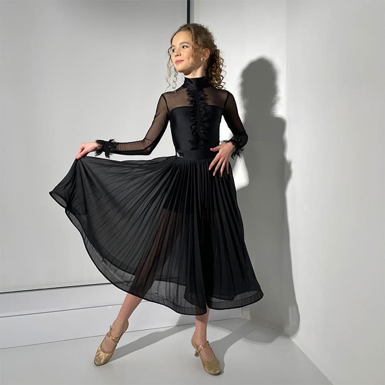 • Elegant black ballroom skirt with sheer accents