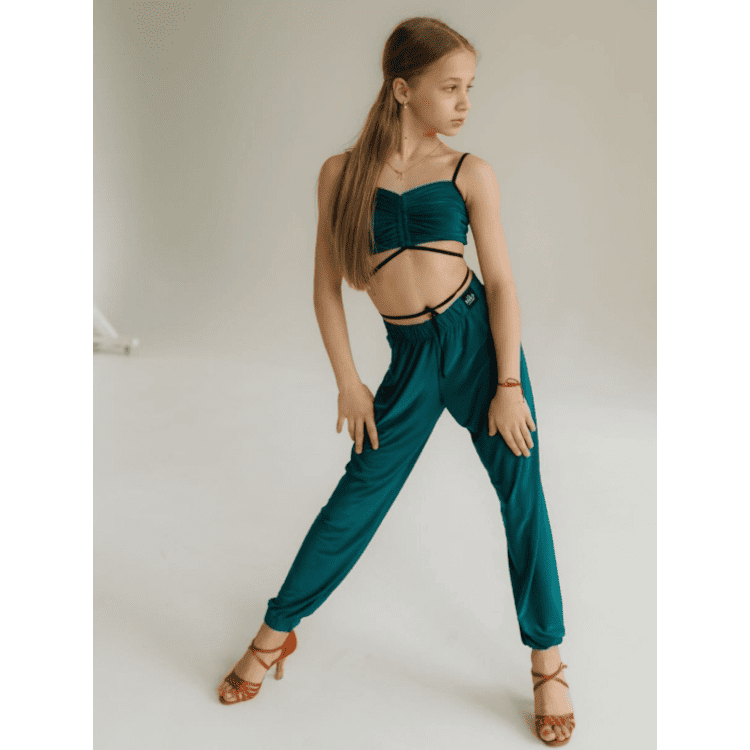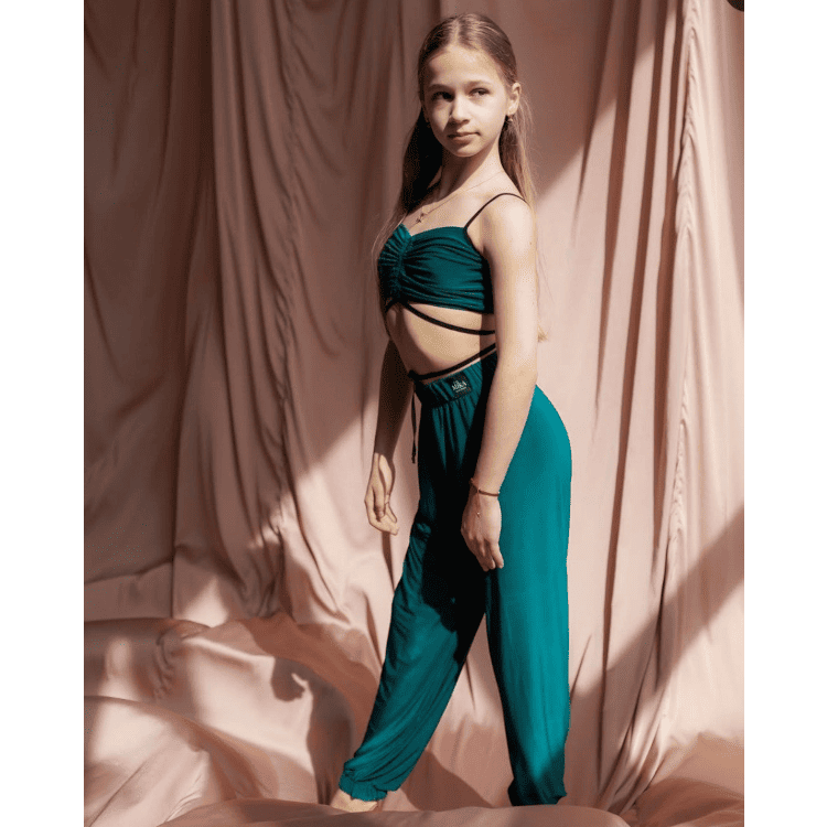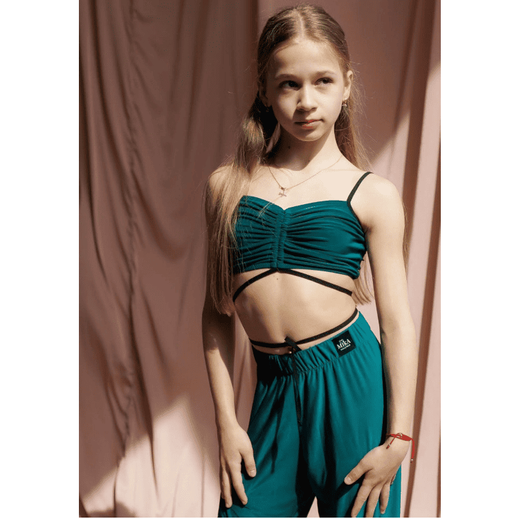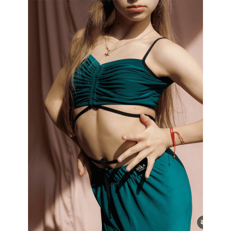 The MIKA Latin Top combines elegance with functionality, designed for young dancers who want to feel both comfortable and stylish. Made from high-quality stretch fabric, it provides a secure fit, freedom of movement, and durability during intense rehearsals. The ruched detailing and delicate straps add a touch of sophistication, making this top a versatile choice for both training and stage.
