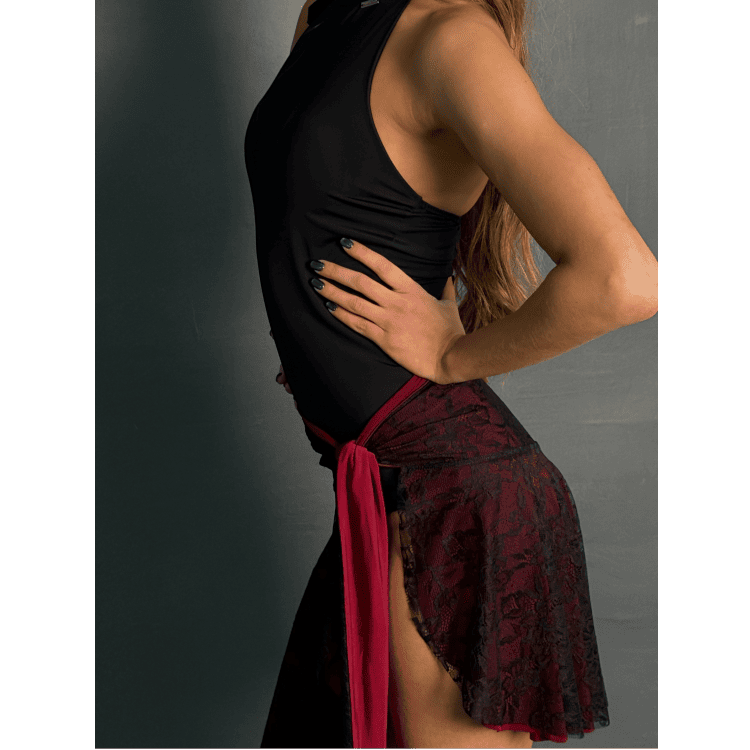 The P/PWLsk06 Reversible Dance Skirt is a striking and feminine piece designed for dancers who want elegance with character. Featuring a rich wine colour combined with classic black lace, it offers two expressive looks in one design.
