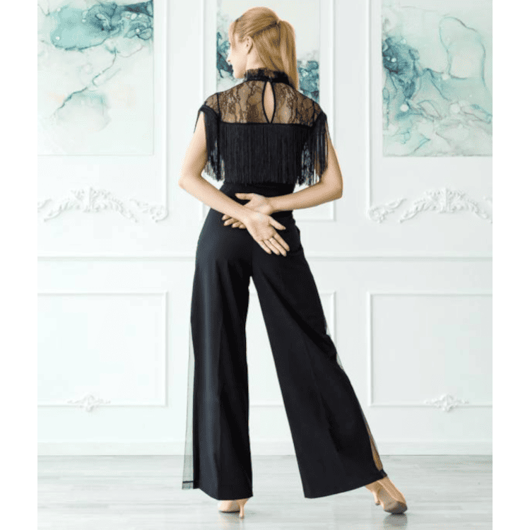 The Star Style Body B-030 combines sophistication and flair, making it a must-have for every dancer’s wardrobe. Featuring a delicate lace top with a high neckline and flowing fringe along the shoulders, this body highlights every movement with elegance and energy. Crafted from premium stretch fabric, it ensures comfort, flexibility, and a flattering fit during practice or performance. Perfect for Latin, ballroom, or stage shows, this piece brings out both confidence and style.