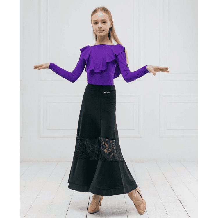 The Star Style Bodysuit Б-05 combines comfort and sophistication in one piece. Made from premium stretch fabric, it provides a flawless fit and freedom of movement, while the ruffle details across the shoulders add a stylish and dynamic accent. Ideal for both rehearsals and stage, this bodysuit is available in bold purple for a striking look or classic black for timeless elegance.