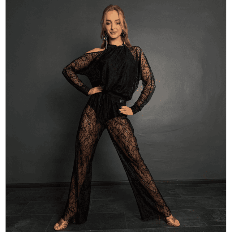 The lightweight sheer texture creates beautiful movement and visual fluidity on the dance floor. The feminine silhouette makes it easy to style with Latin skirts, shorts, or dance pants, elevating both practice and performance outfits.