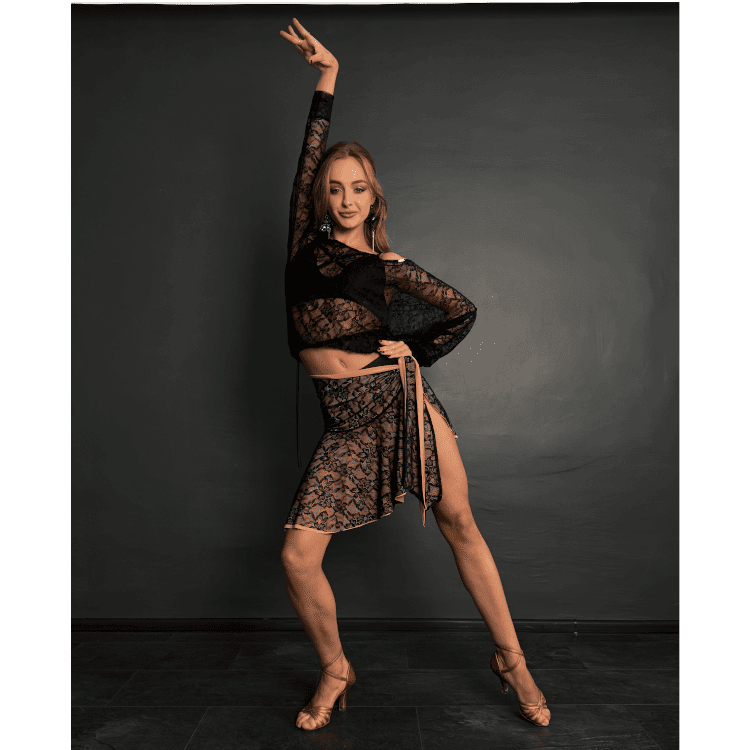 The P/PWLtu03 Top is a refined and expressive piece created for dancers who value elegance and versatility. Crafted in delicate black lace, it adds depth and sophistication to any dance look while highlighting natural body lines.
